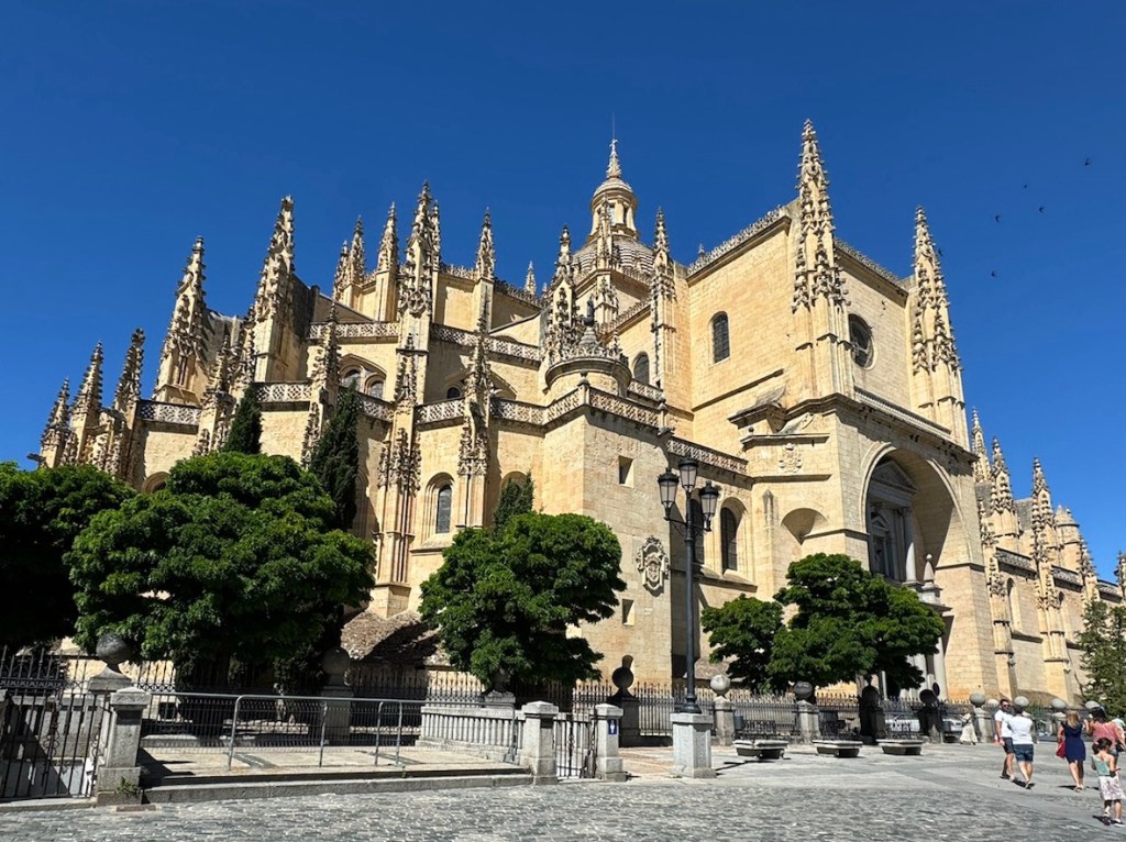 Segovia Cathedral, at the highest point in the city, is an imposing building. It has 21 chapels and a massive bell tower looming above the city.