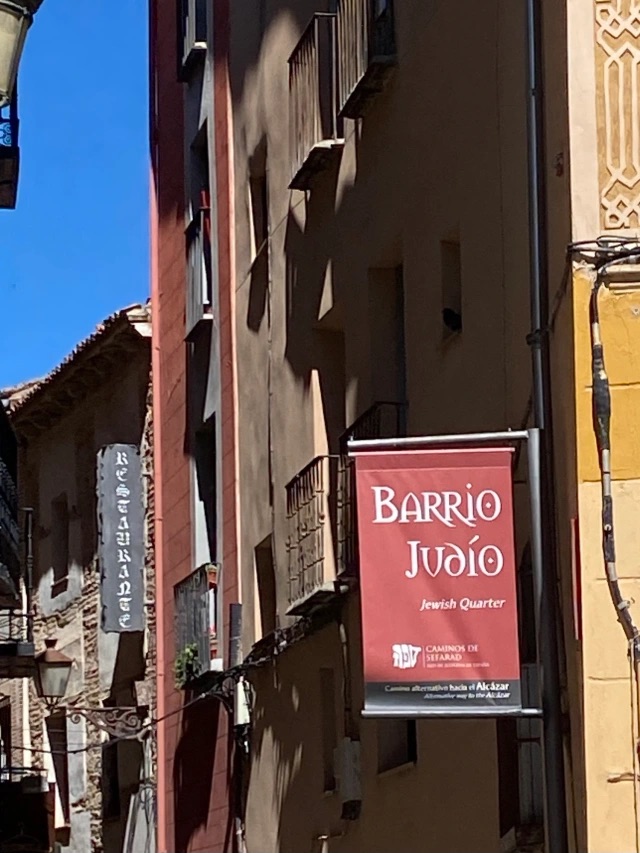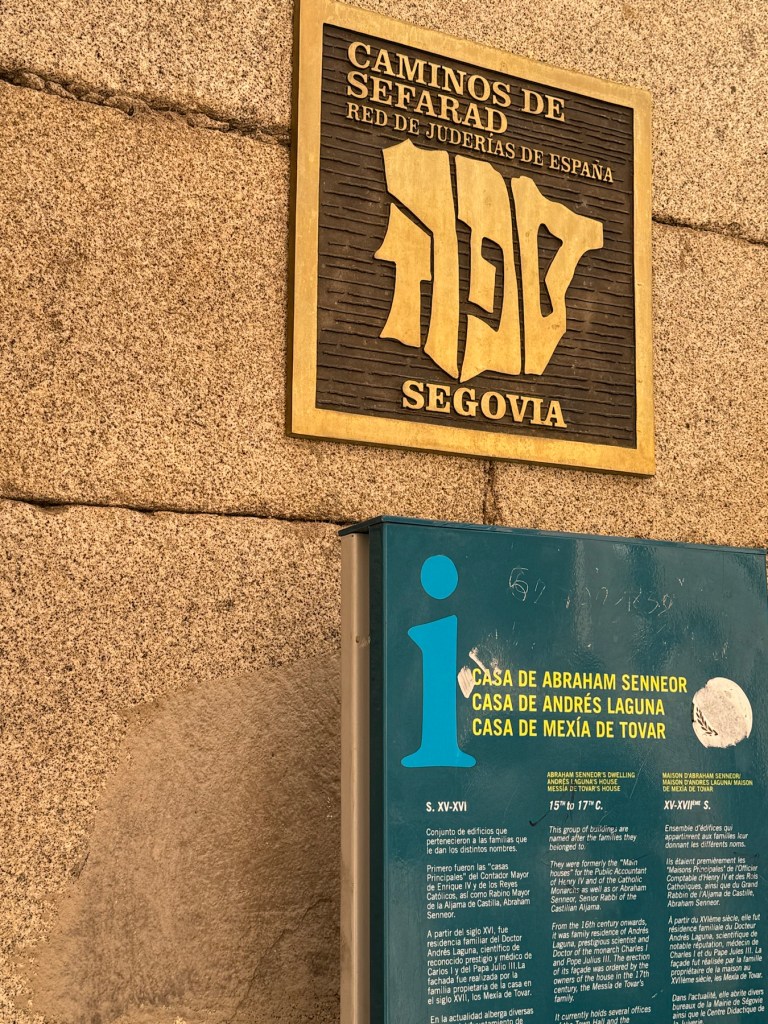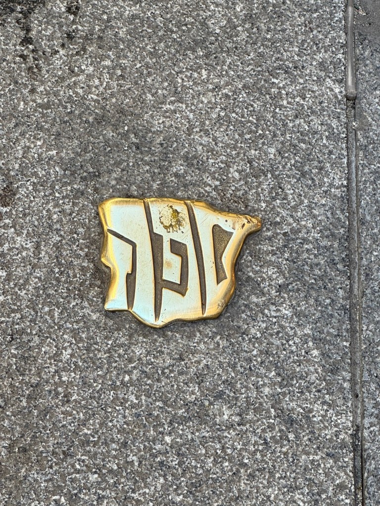 Walking through the pedestrian streets lined with shops and restaurants, we saw a shiny marker in the shape of Spain and Portugal with the Hebrew word Sephard. This marks the Jewish Quarter. There was, before 1492, a robust Jewish community throughout the Iberian peninsula. There is now a Camino Sefarad, a walk to many of the Jewish communities in Spain.