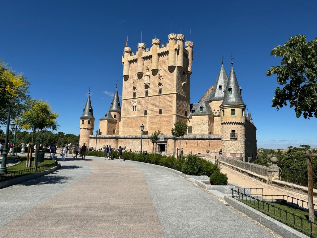 A five minute walk down narrow streets leads you to the castle (Alcazar). It is beautiful from the outside, The Alcázar became one of the favorite residences of the Spanish kings. Additional construction and renovation work shaped the fortress into a palace. It is believed that the Disney film Snow White and the Seven Dwarfs, used the Alcazar of Segovia as the inspiration for the wicked Queen’s castle.