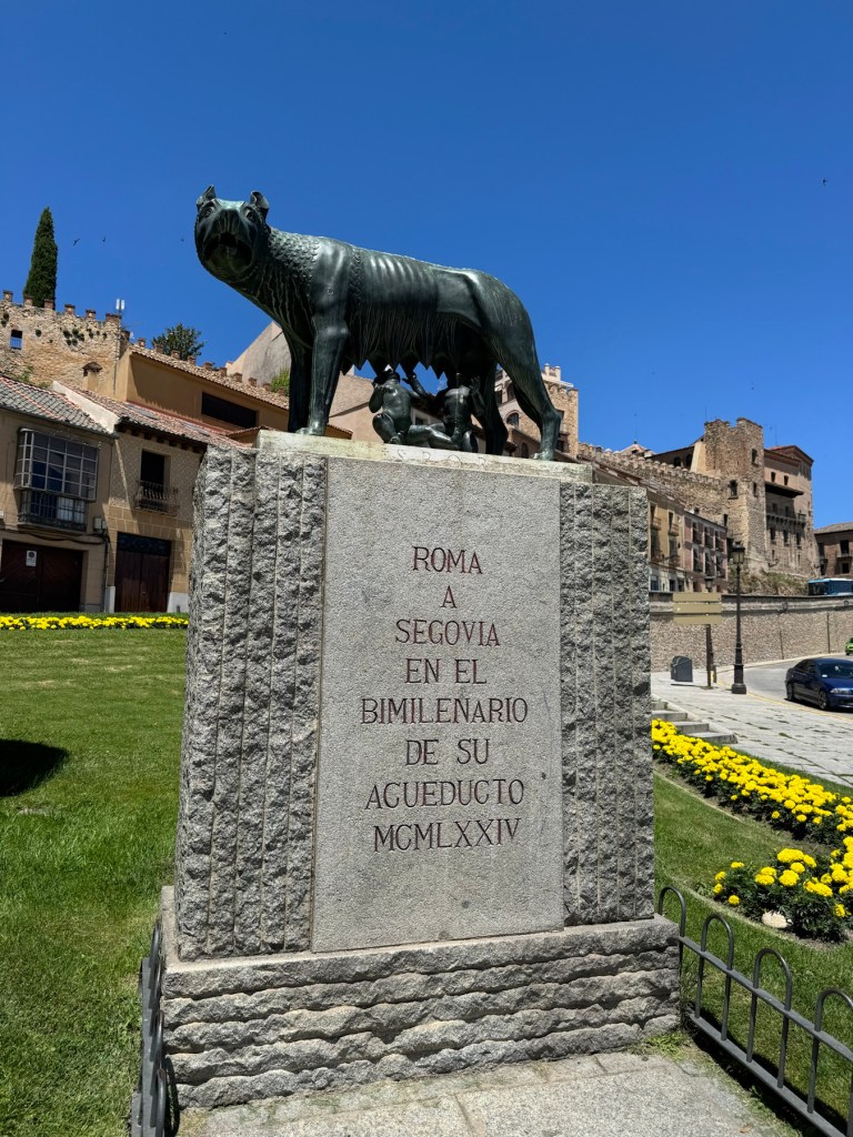 Just before the aqueduct, on the way into the town is a nod to Rome. There, is a replica of the bronze sculpture of the Capitoline, the she-wolf that in ancient Roman mythology suckled and raised the founders of Rome, Romulus and Remus.
