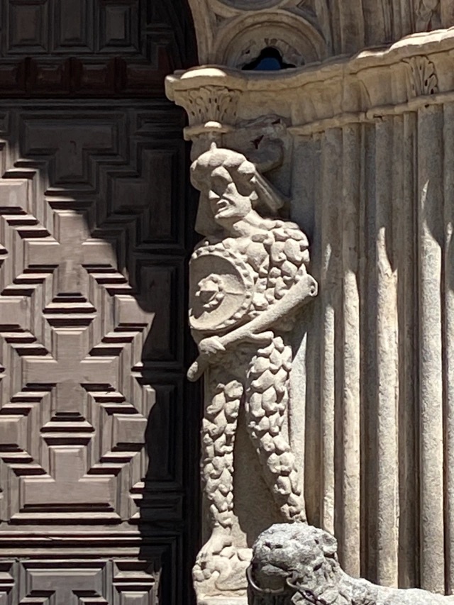 Fortified with yemas and other sweet treats, we walked the quiet streets to the cathedral. Avila’s Cathedral is smaller than most cathedrals in Spain and it actually forms part of the heavily fortified walls of the city. Fascinating to me are the two characters guarding the entrance, meant to scare away those that might invade; they look like sea monsters.