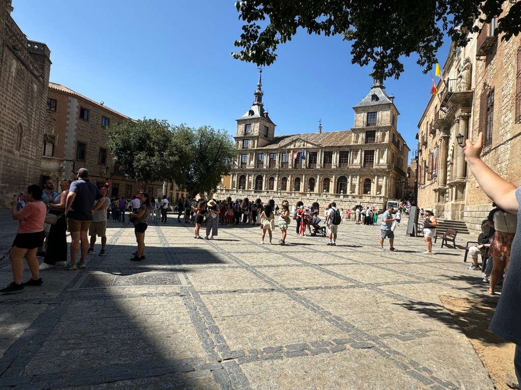 The cathedral, which is built on the highest point in the city can be seen from almost every vantage point in Toledo. The bell tower is gigantic and contains fifteen bells. One of the bells is so large that it took a team of oxen and many pulleys to raise it into position. It rang once, breaking windows in the surrounding buildings and cracking itself, never to ring again.