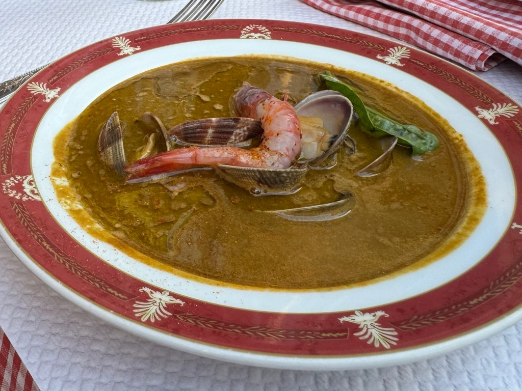 Bienvenue a France! We are in Nice to soak up the sun, eat French food and watch the final two days of the Tour de France. Check, check and check. For dinner we went to a Michelin listed restaurant Chez Davia. The dishes were prepared and plated with care. We ate lightly fried zucchini flowers, lamb stuffed vegetables, pasta with pesto and a fish stew.