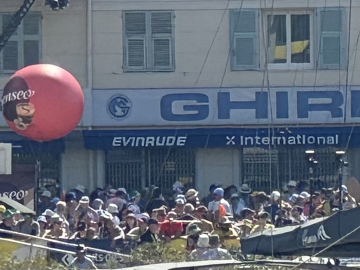 Saturday we headed to the old pier where the penultimate stage of the race would begin. We found a fun in the sun location to watch the caravan of sponsors ride by and throw swag to the crowds of fans. We scored some candy and a few bucket hats.
