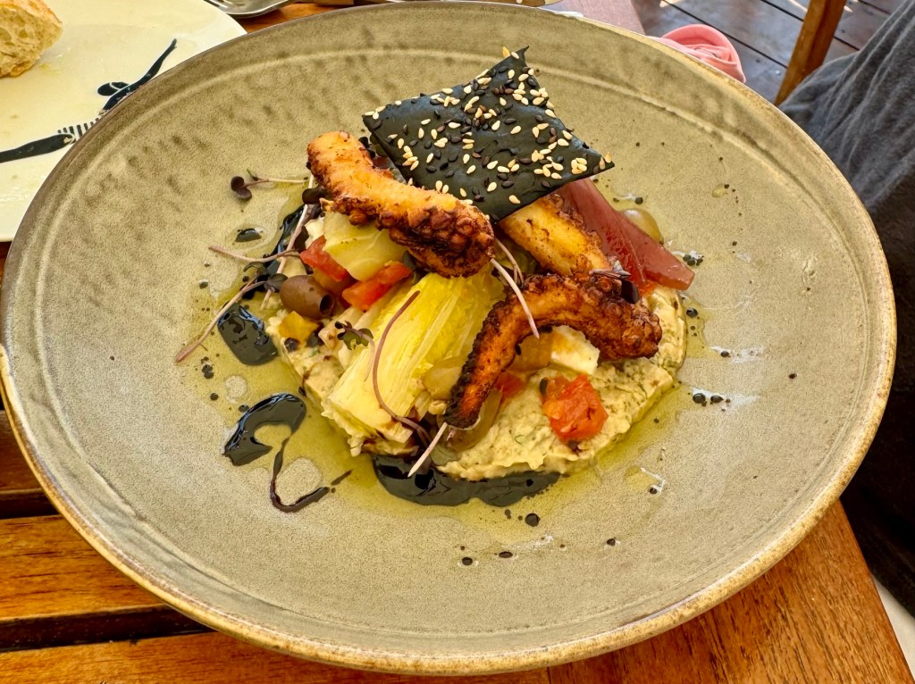 Lunch was at Le Plongeoir, over the ocean with both amazing views and food. Crab salad, grilled octopus, and for dessert; raspberry coconut, chocolate ice cream bomb and lemon meringue tart.