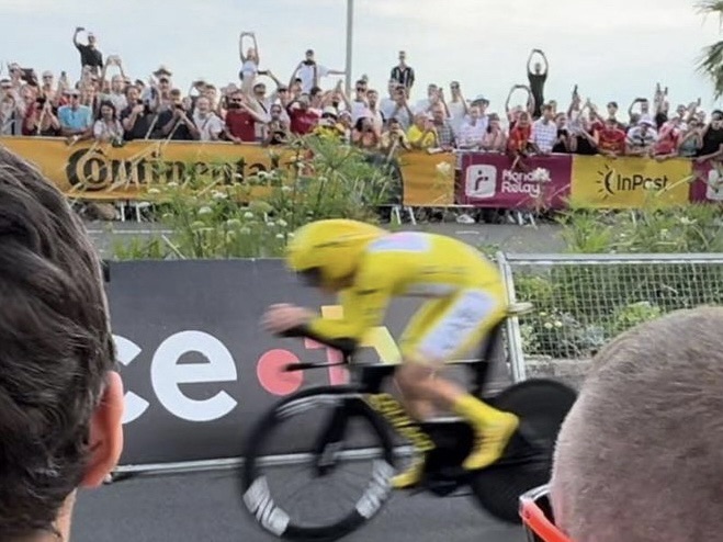 The final and fastest rider crossed the finish close to 7:00pm. The crowds, still polite, dispersed and a fly over happened before the winners ceremony. What a thrill to experience this event up close.