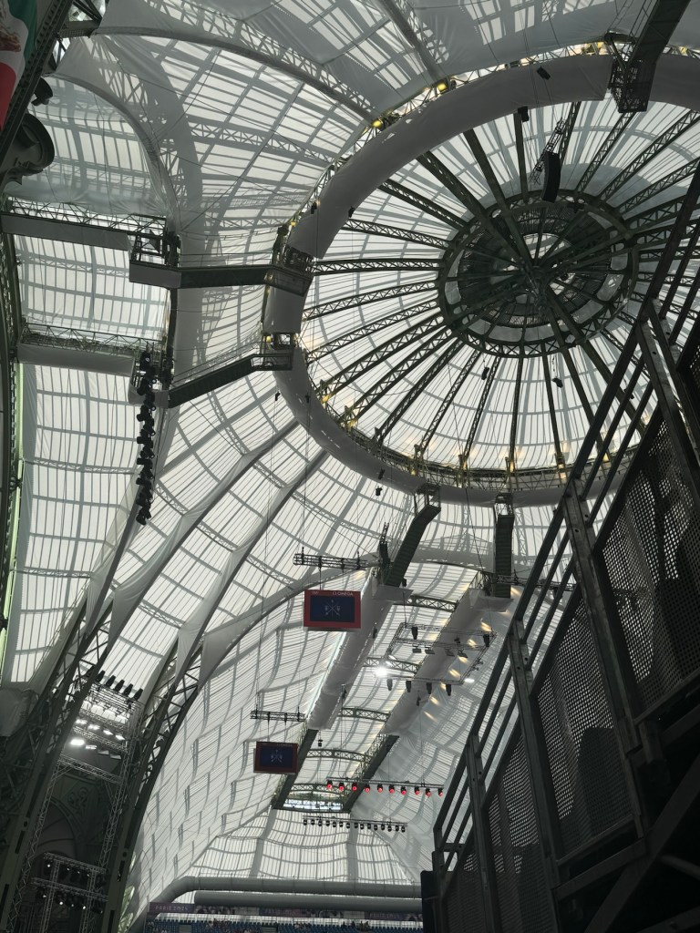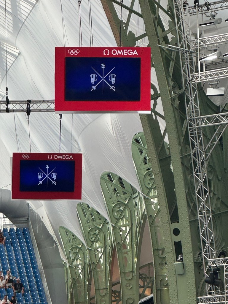 The Grand Palais is a steel, stone and lots-o-glass structure which was originally completed in 1900 for exhibitions and events. After a century of wear and tear, it has been beautifully restored and is hosting the Olympic Fencing events.