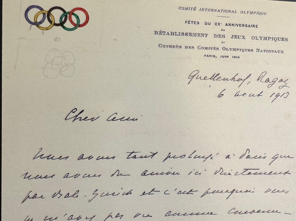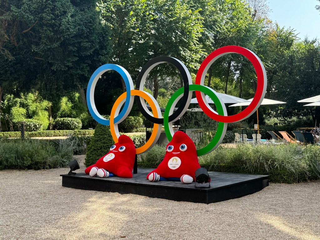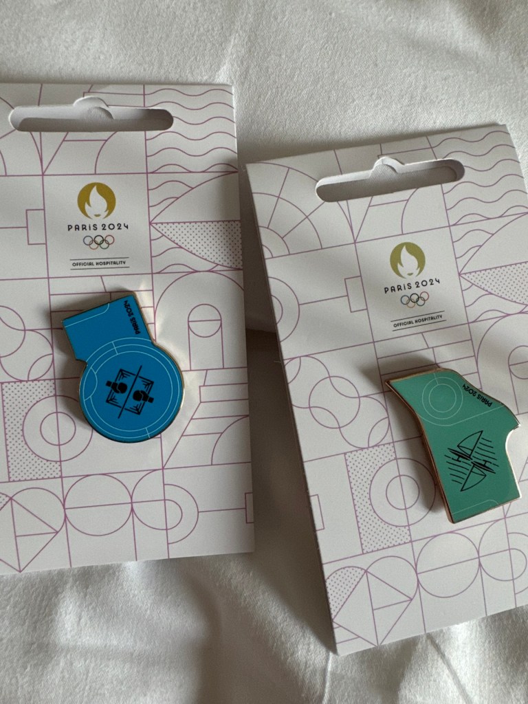 Following the match we walked over the bridge and headed to the Maison de l’Amérique latine (Latin America House) where we had tickets to view the mansion, view a photography exhibit and see some original Olympic designs and correspondence by Pierre de Coubertin, the founder of the Modern Olympic Games. The home is stunning with rococo details and large windows looking out to a massive private backyard. There was delicious food, drinks, large screen TVs with live events and as a special bonus, we were given some Olympic pins that have graphic sports disciplines, the entire set of disciplines can combine, like a puzzle to the shape of Paris.