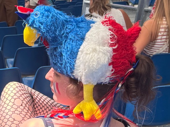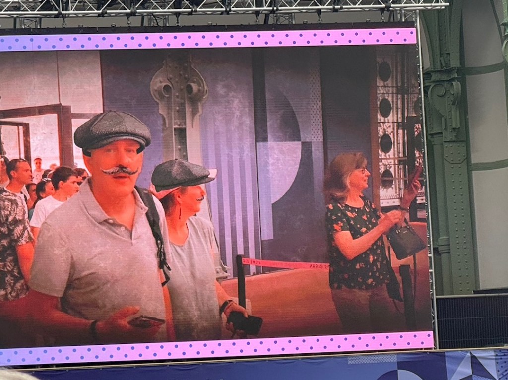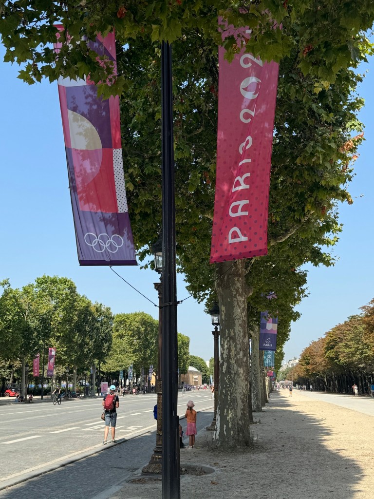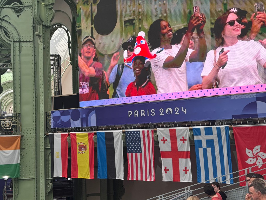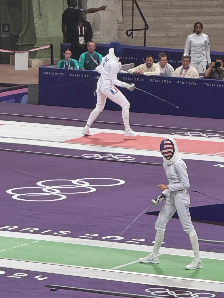 Our morning was filled with delight as we walked through the city streets and by the fenced off parks (for security) along with many other Olympic fans. As we headed to watch Team Epee at the Grand Palais we passed the Official Olympic Store with a crazy long line that actually moved very swiftly.
