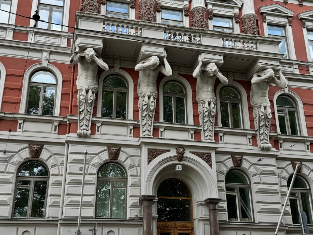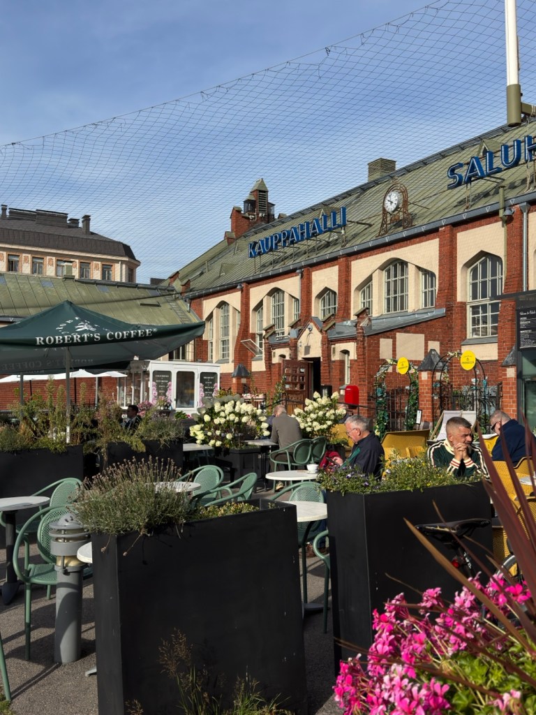 A morning walk through quiet neighborhoods was a great way to begin the day. The streets were mostly empty letting us enjoy the sunshine and the architecture. We passed the memorial statue of the Winter War (1939-1940, Finland vs the Soviet Union), an old fire station, an old library and shops with carved doors and one with a funnily translated sign. We walked through Hietalahti Kauppahalli Market. There are three traditional Helsinki markets. This one is mostly restaurants, specialty foods and crafts.