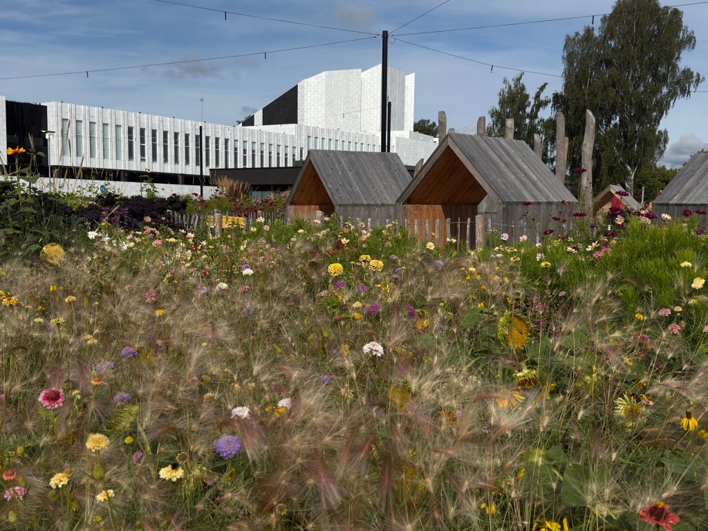 The plaza area behind the library is also a planned community space. It stretches past several buildings including a beautiful concert hall. There are children’s playgrounds, ping-pong tables, a basketball court, sculptures and gardens with wildflowers.