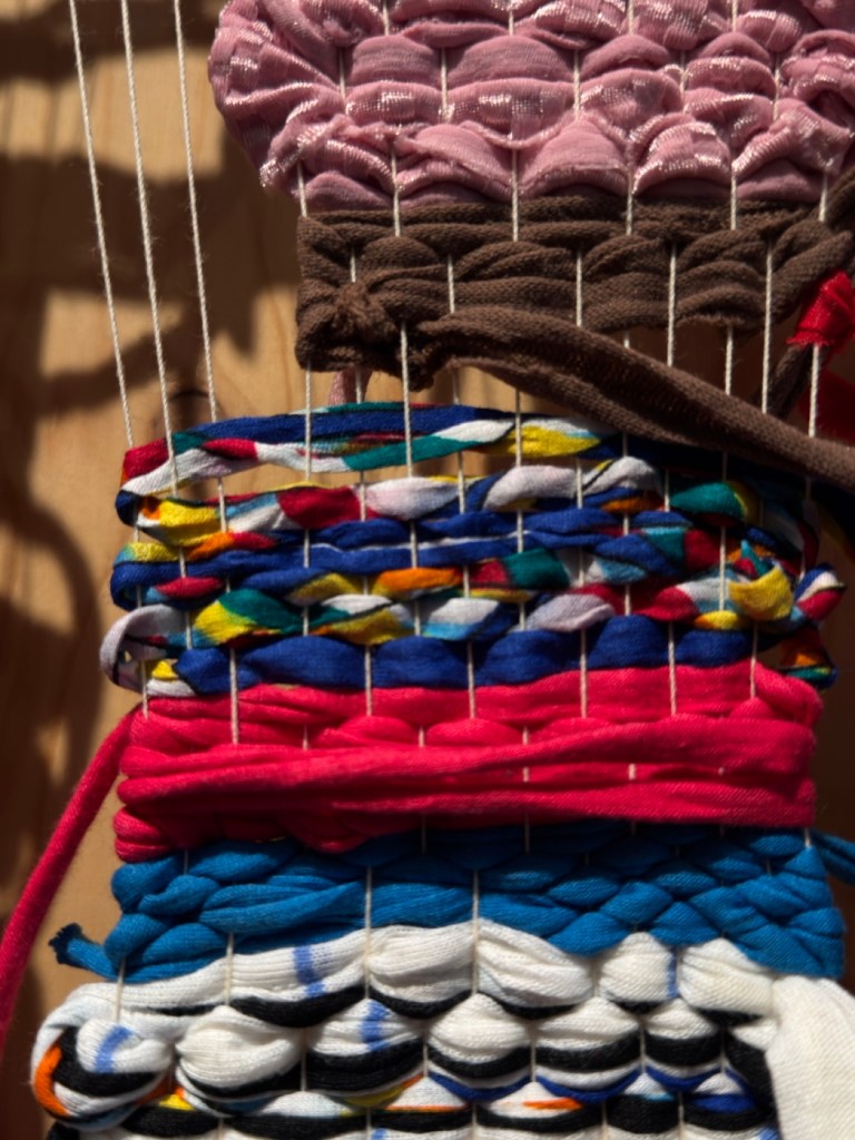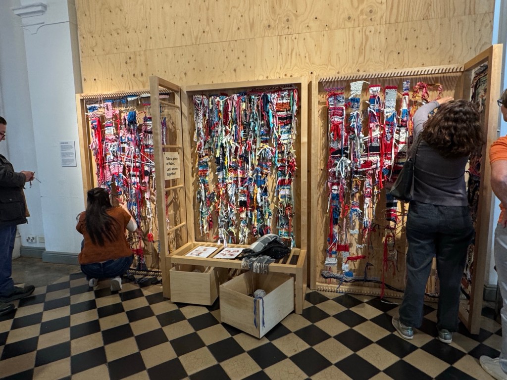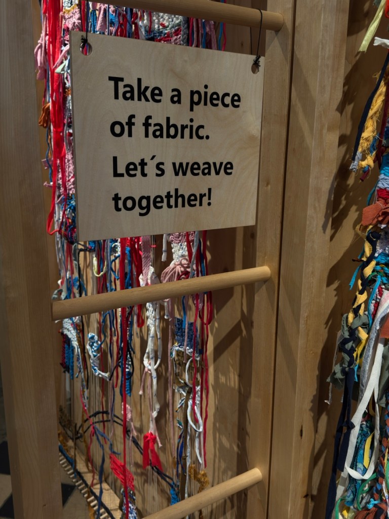 Bliss cannot begin to describe our delight with our entire day. As we headed back to the hotel, we thought it would be fitting to make a stop at the Architecture & Design Museum (admuseo). There were several interesting exhibits and there was a joint weaving project in the lobby, yes, here is our contribution.